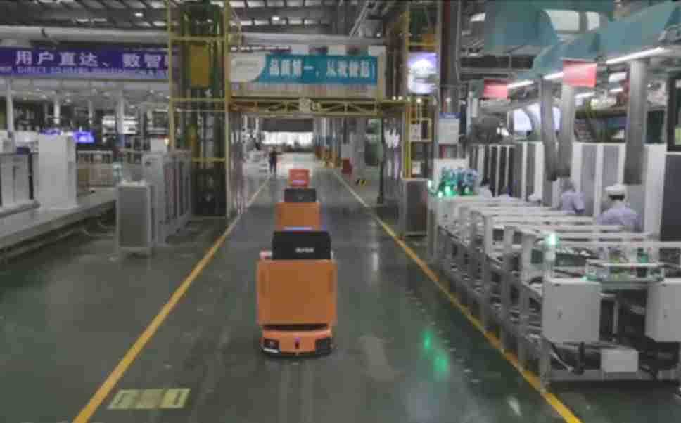 为车载冰箱物流配送打造的智能解决方案,,包含产中物流通过潜伏举升AMR搬运至线边,,产后成品物流智能仓储,,流程包含产中物流智能齐套入库,,线边安灯叫料AMR智能配送至线边,,,成品入库、、、、出库,,,,通过无人堆高车机器人,,,,智能仓储管理替代人工作业管理,,,,实现更高存储、、更高效率、、更具柔性化的解决方案。。。